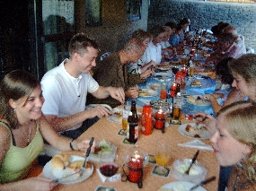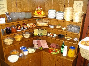wartet bereits eine Tafel, voll gedeckt mit Leckereien. Und dann wird gegessen, bis die Bäuche nicht mehr können. Damit der Abend dann aber doch noch so richtig fein wird, gibt es ein "Verdauungsschnapserl" vom Haus und dann kann der Abend weitergehen. |
